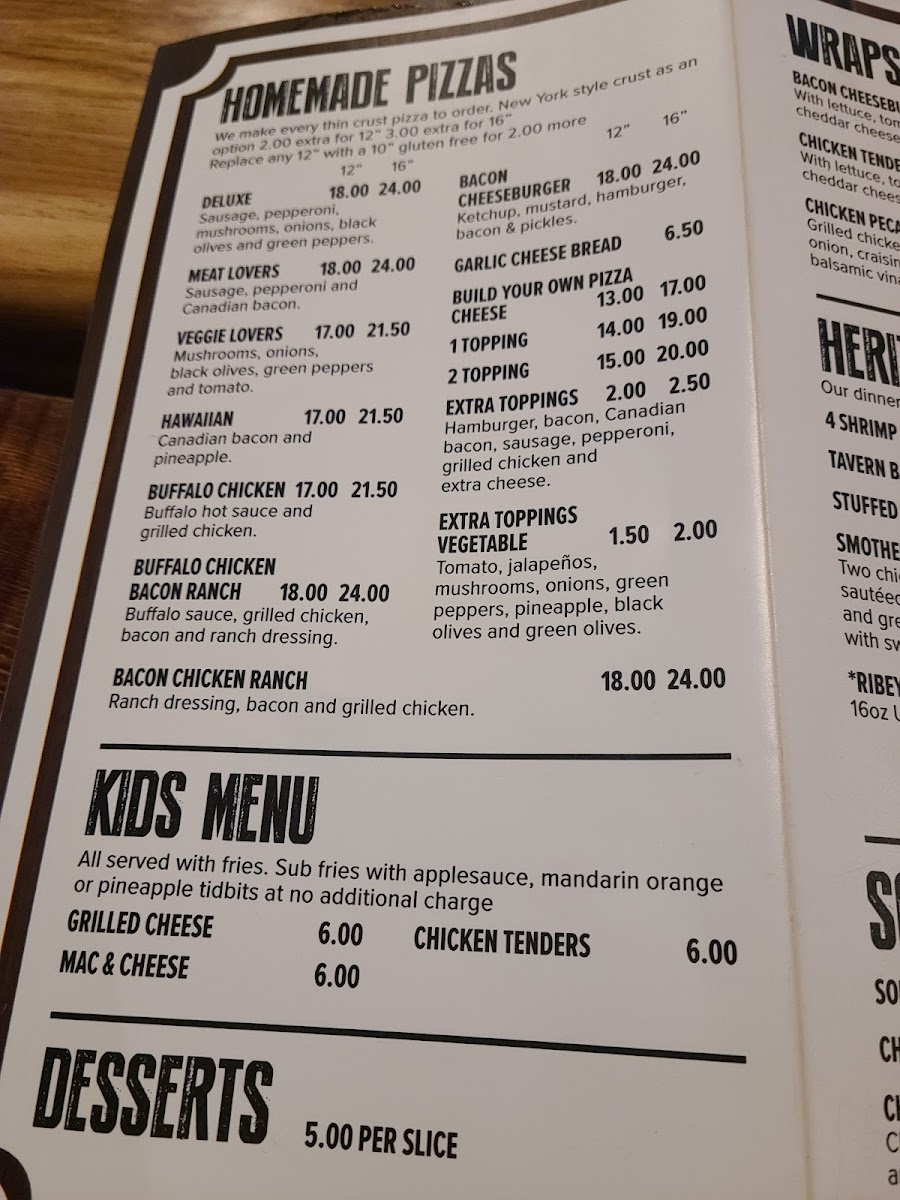 The Heritage Inn offers a menu that balances classic bar and grill favorites with hearty, comforting meals suited for relaxed dining. The menu features a range of options from satisfying sandwiches and homemade pizzas to generous prime rib cuts and fresh fish dinners. Whether you're stopping in for a casual lunch, a laid-back dinner, or enjoying the popular Friday Fish Fry tradition, the food here complements the welcoming, neighborhood bar atmosphere.